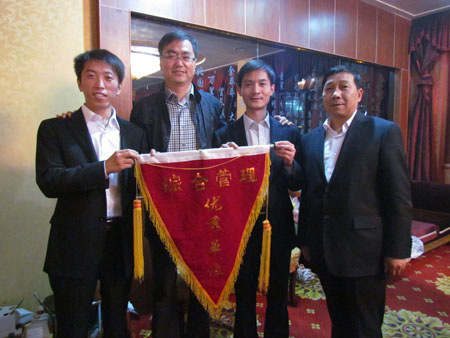 在此次會議上舉行了“三比三看”活動首面流動紅旗頒發(fā)儀式,檸條塔調(diào)運(yùn)部以“管理規(guī)范、團(tuán)隊和諧、服務(wù)優(yōu)質(zhì)、環(huán)境整潔”贏得了廣大司機(jī)、客戶及礦方的認(rèn)可和肯定,從而獲得了首面流動紅旗。檸條塔調(diào)運(yùn)部主管王鵬(小)在會上發(fā)表了獲獎感言:在廣通神木分公司全力沖刺2012年各項目標(biāo)任務(wù)的關(guān)鍵時期,分公司授予檸條塔調(diào)運(yùn)部的這面綜合管理流動紅旗,不僅激勵了檸條塔調(diào)運(yùn)部全體員工的工作熱情和工作積極性,更是鞭策了廣通神木分公司的全體員工。我們將以此為契機(jī),立足本職,學(xué)習(xí)借鑒兄弟部門的先進(jìn)經(jīng)驗,不斷改進(jìn)自己的工作方式、方法,力爭使檸條塔調(diào)運(yùn)部的各項工作能再上新臺階。