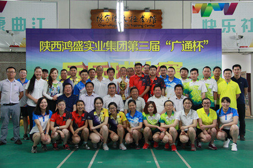 5月28日,陜西鴻盛實(shí)業(yè)集團(tuán)第三屆“廣通杯”職工乒乓球賽在曲江舉行。集團(tuán)總經(jīng)理李繼宏、集團(tuán)黨總支書記沈來萬、集團(tuán)副總經(jīng)理張益銘等人出席開幕式。